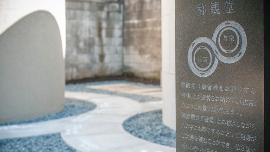 「称観堂」は、観音さまをお祀りする「与楽」と、ご遺骨をお納めする「抜苦」の二つのお堂で成り立ちます。「抜苦与楽」 ― 衆生を苦しみから救い、福徳を与える ― という言葉は、観音さまそのものである大慈大悲という仏徳をより具体的に表したものです。